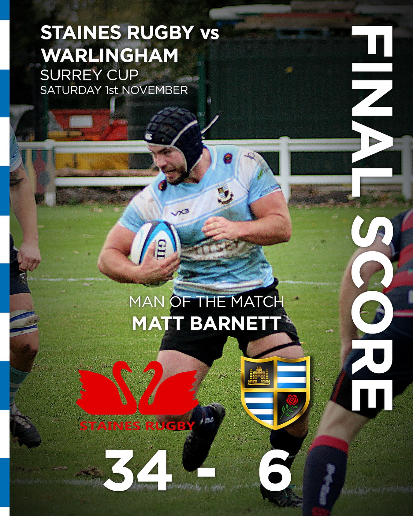 Staines finished the game strongly with two late tries to put the cherry on top of a sweet victory for them. Warlingham ended the game with 14 as Wilson saw yellow for a high tackle.