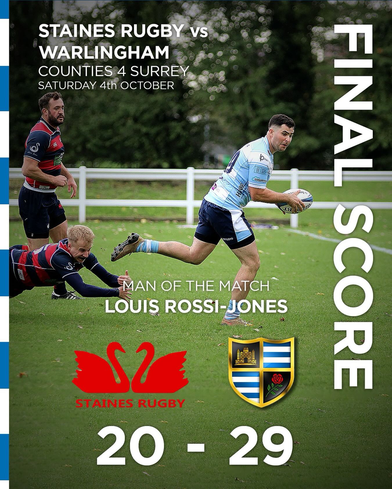 To their credit, Staines showed real determination to score again in the final play, closing the gap to 29–20, but the missed conversion meant Warlingham took maximum points.